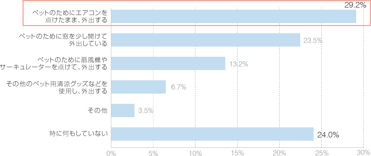 ダイキンの調査では、ペットのためエアコンを付けている家庭は29.2%にすぎず、窓を開ける23.5%、扇風機を使う13.2%という対処法が多いことが分かりました。