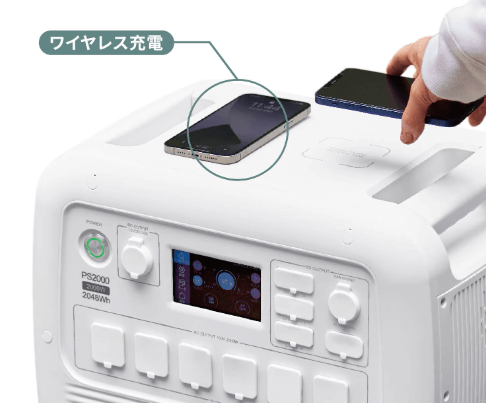 アイリスオーヤマのポータブル電源は、スマホのワイヤレス充電が可能です。