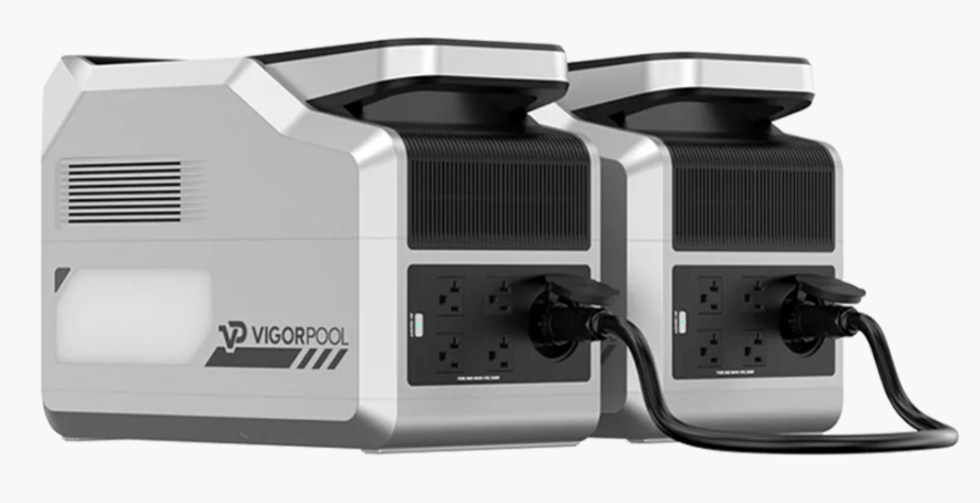 ビゴプールポータブル電源は、2台を繋いで容量アップができます。