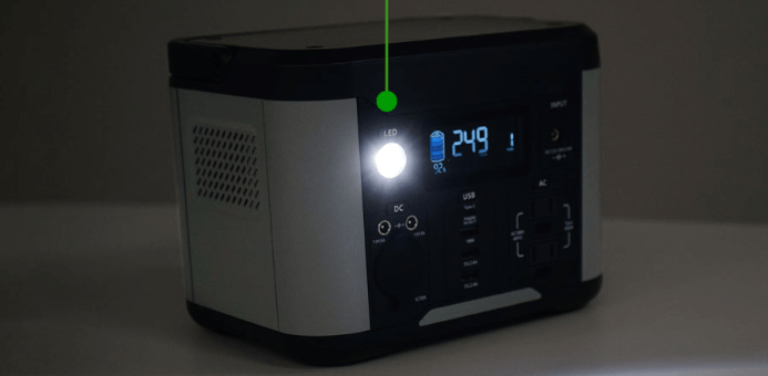 多摩電子工業のポータブル電源は、本体にLEDライトが付いています。